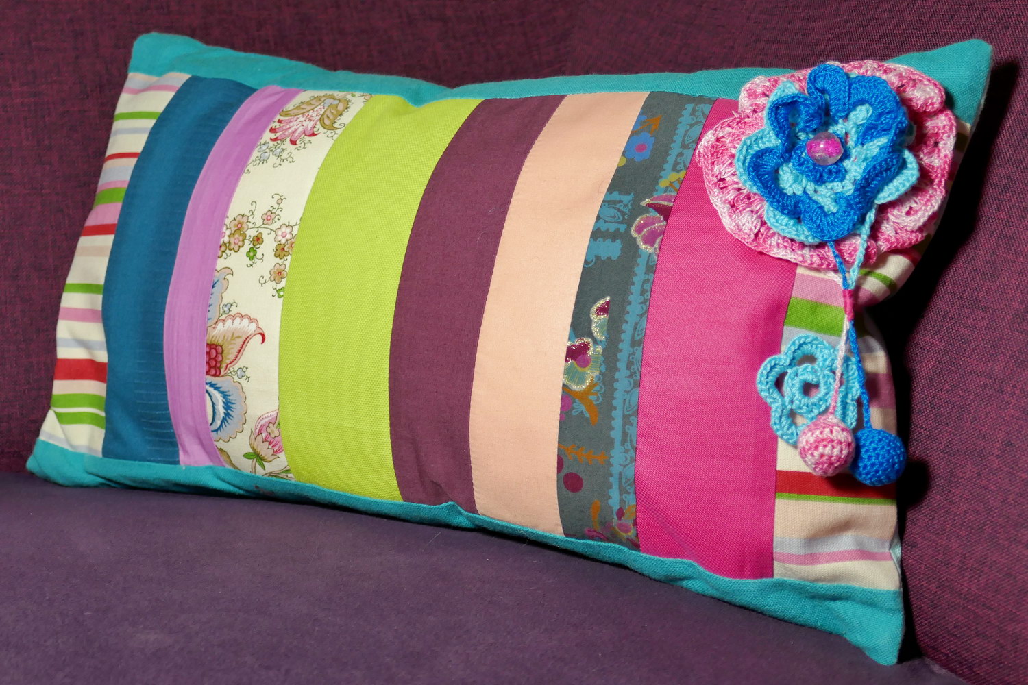 L’inspiration principale de mes créations est basée sur la réutilisation, à travers la collecte de chutes ou d’échantillons de tissus de toutes matières (soie, coton, organdi, velours, satin…), et leur assemblage pour en faire des décors.