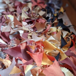 Les chutes de soie utilisées proviennent de boules décoratives confectionnées pour Noël. Réemployées ici, elles poursuivent leur histoire dans une nouvelle composition, entre superposition et transparence.
