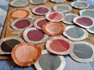 Le contour de chaque pétale est peint pour renforcer le tissu mais également pour donner une touche d’originalité à chacune.